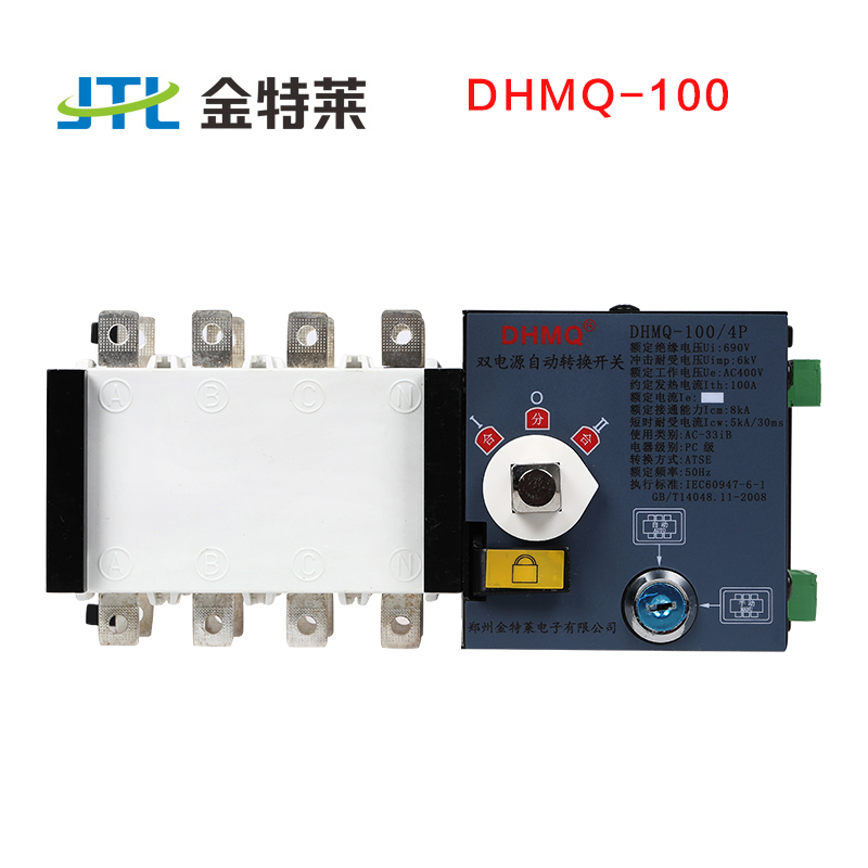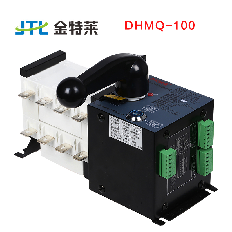 DHMQ-100型双电源自动转换开关,适用于交流50Hz、交流额定电压380V、额定电流至3150A、三相四 线制供电系统。 能实现常用电源与备用电源的自动和手动切换,在切换电源过程时,中断向负载供电。 适用于要求两路电源供电和对电源质量要求高的场合。