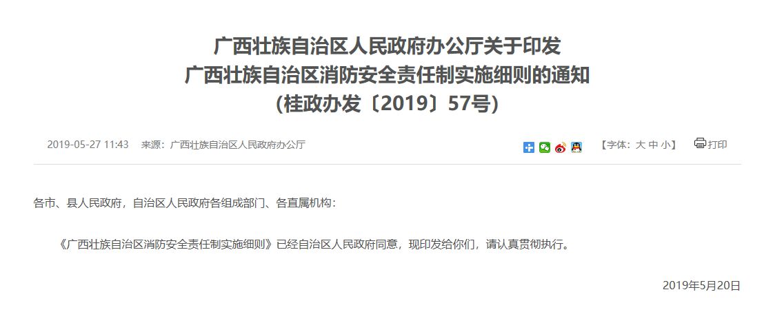 2019年5月22日,自治区人民政府办公厅印发了《广西壮族自治区消防安全责任制实施细则》(桂政办发〔2019〕57 号,以下简称《细则》),为让大家更好地理解《细则》的内容和有关精神,现解读如下: